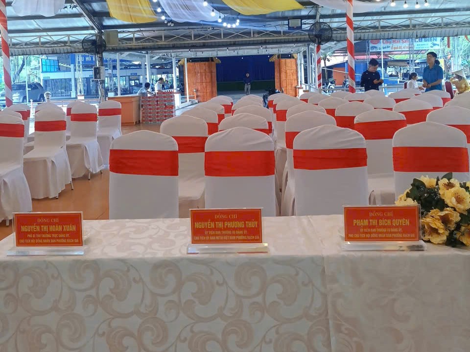 - Trang trí sự kiện: Đội ngũ Phú Điền đã biến tấu không gian theo đúng yêu cầu, từ dải lụa trần, đến backdrop và hoa sen, tạo nên không khí phù hợp với chủ đề chính trị - xã hội.