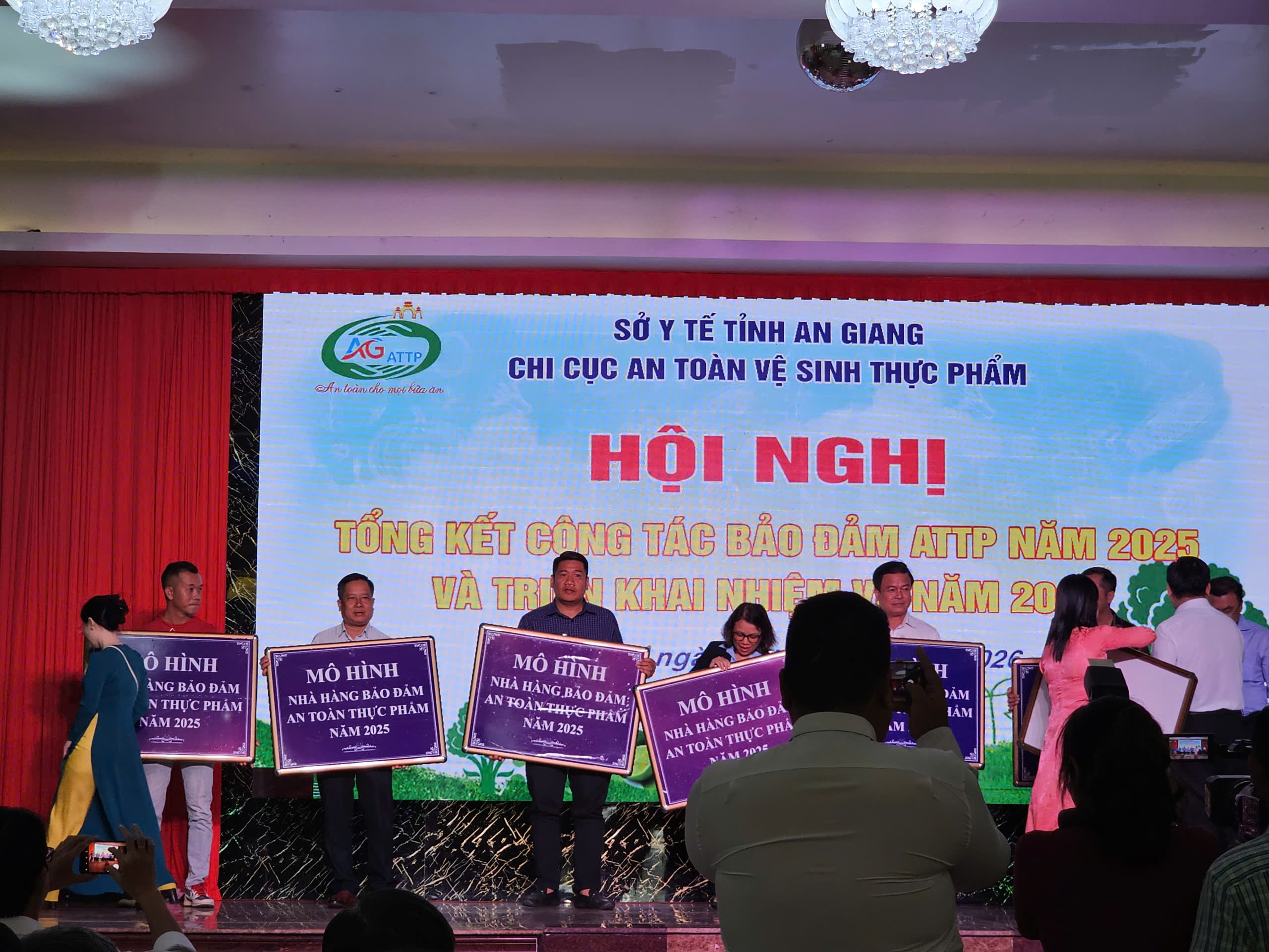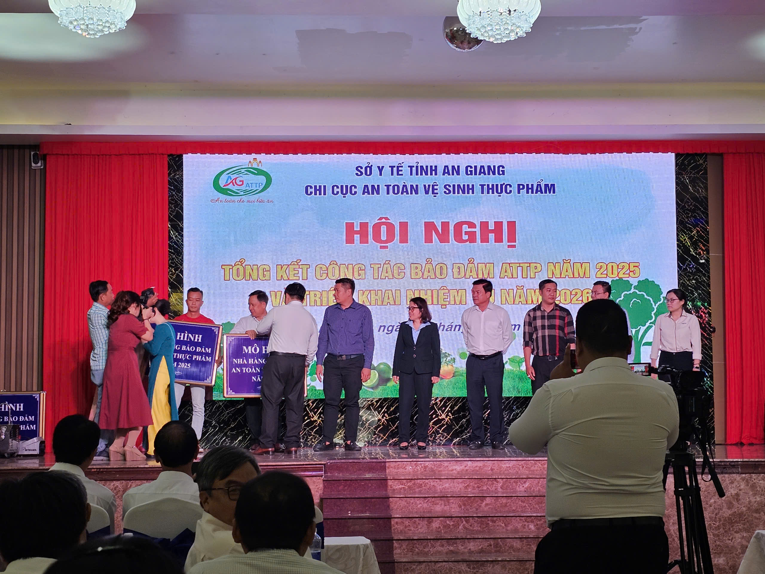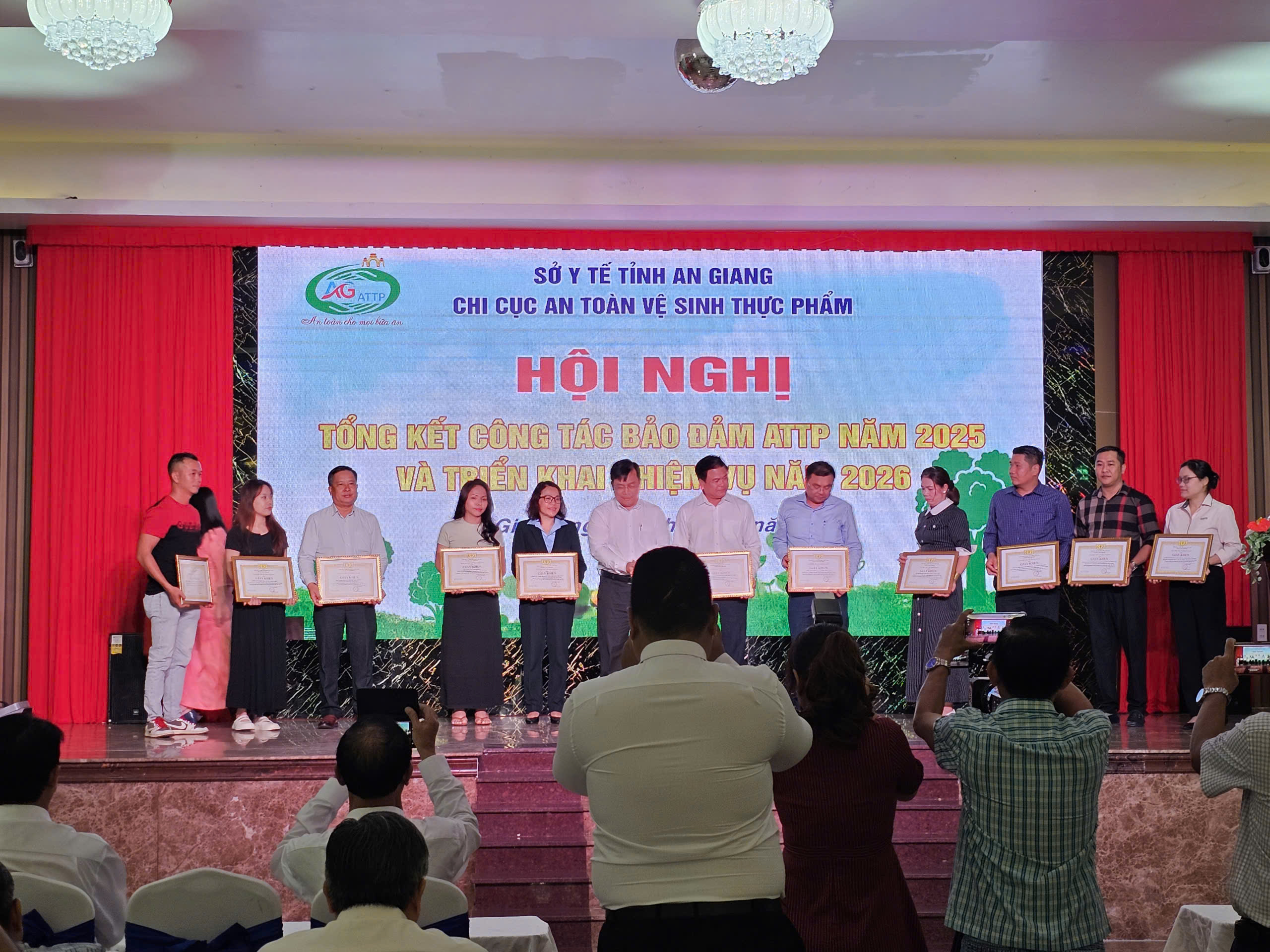 Trong khuôn khổ hội nghị, Sở Y tế tỉnh An Giang đã trao tặng giấy khen cho các đơn vị tiêu biểu có thành tích nổi bật trong công tác bảo đảm an toàn thực phẩm năm 2025.